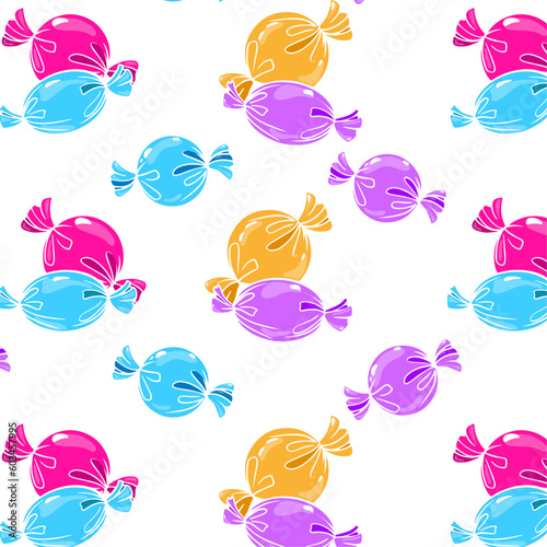 seamless pattern with painted candies and lollipops