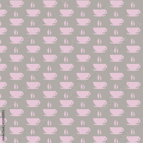 seamless pattern with pink cup of coffee on creamy beige background,cute cup of latte