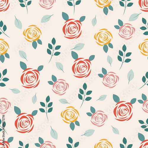 Seamless pattern with rose on pastel background