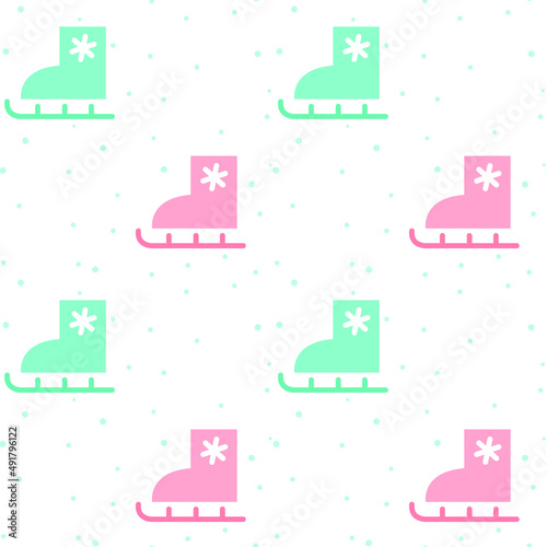 Seamless pattern with skates on snowy white background. Modern design for fabric and paper, surface textures.