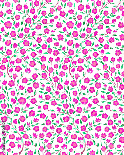 Seamless Pattern with Small Pink Flowers. Vector Hand Drawn Illustration.