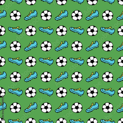 Seamless pattern with soccer ball. Doodle vector illustration with football ball. Colored football background