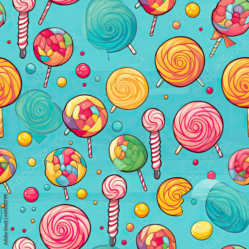 Seamless pattern with sweet candies and lollipops. Vector illustration.