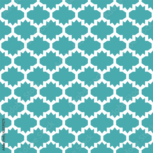 Seamless pattern with teal geometric Moroccan tiles