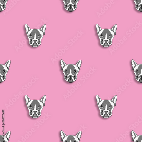seamless pattern with the image of a dog. pastel purple background. Square image.
