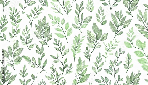 seamless pattern with tree branches and leaves for surface design and other design projects modern trend drawing in line art style delicate small leaves in watercolor elegant greenery herb print