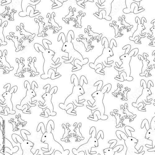 Seamless pattern with vector image of hares. Animals play with each other. Pattern for wallpaper, fabric, children's clothing, bed linen.