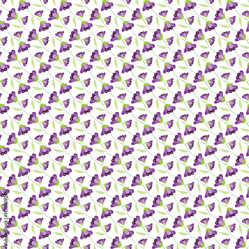 Seamless Pattern with Vibrant Purple Flowers and Green Leaves
