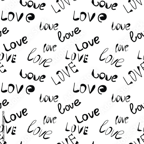 seamless pattern word love. black and white lettering. for printing on fabric, wrapping paper. Hand drawn lettering phrase. Black ink. Vector illustration. Valentine's Day. laconic confession. trend