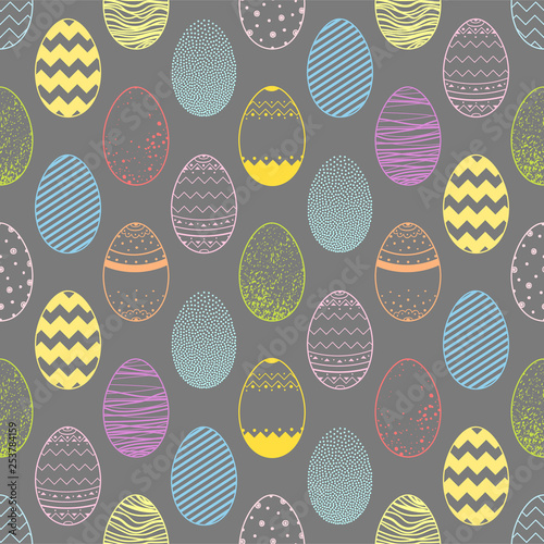 Seamless pattern.Pattern with different colorful easter eggs. Hand drawn stylized elements.Easter holiday decorative background perfect for prints, flyers,banners,invitations,special offer and more.
