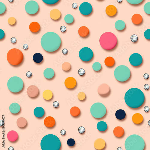 Seamless polka dot, Polka dot fabric with tiny crystal embellishments in high fidelity resolution for design or textile use.