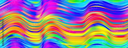 Seamless psychedelic rainbow heatmap molten wavy glass refraction stripes pattern background texture. Trippy hippy abstract dopamine fashion motif. Colorful neon retro wallpaper backdrop