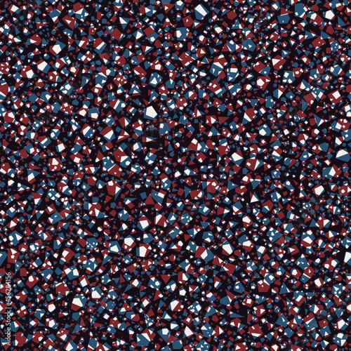 Seamless red and blue overlay circles and shapes pattern for surface print. High quality illustration. Simple minimalistic geometric deco design resembling bubbles or balloons. Contemporary modern art
