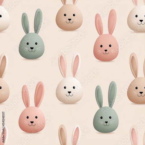 Seamless repeat pattern of adorable zombie bunnies in Halloween-themed colors (pale green, blush pink, cream) on soft peach background