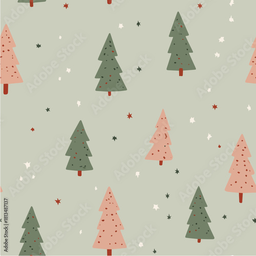Seamless, repeating pattern,whimsical forest of Christmas trees