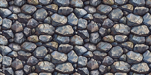 Seamless rock pattern, tileable stone wall or road texture illustration, great for video game design