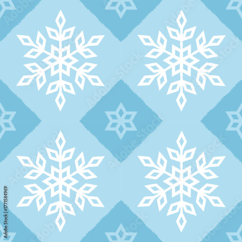 Seamless snowflake pattern design in woven fabric style with blue and white color. For textiles, tiles, gift wrapping paper and seamless artwork background.