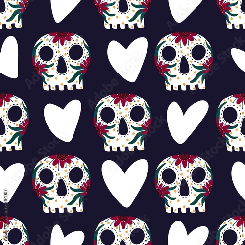 Seamless sugar skulls pattern for fabrics and textiles and packaging and gifts and wrapping paper