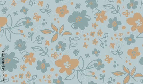 Seamless summer pattern with flowers for little girls on beige background in vector.eps