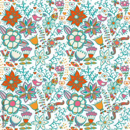 Seamless texture with flowers, birds and butterflies. Seamless p