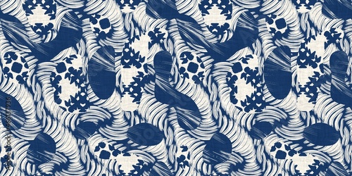 Seamless two tone hand drawn brushed effect pattern border swatch. High quality illustration. Collage of minimal drawings arranged in a seamless pattern with fabric texture overlay. Rough scribble.