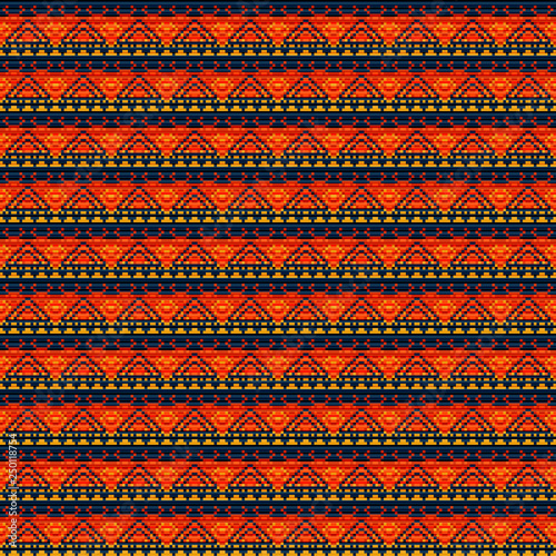 Seamless vector carpet. orange folk ornament in the style of embroidery. Pixel decorative pattern for textiles.