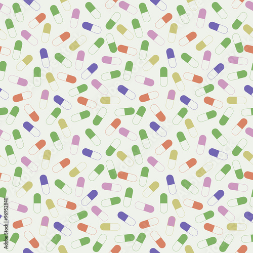 Seamless vector pattern, light chaotic background with colorful medical pills, drugs