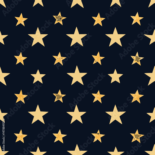 Seamless vector pattern of gold stars on a dark background
