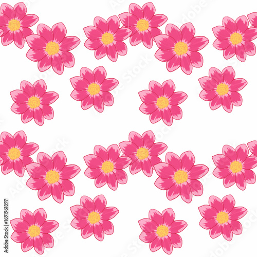 Seamless Vector Pattern of Pink and Yellow Floral Blooms