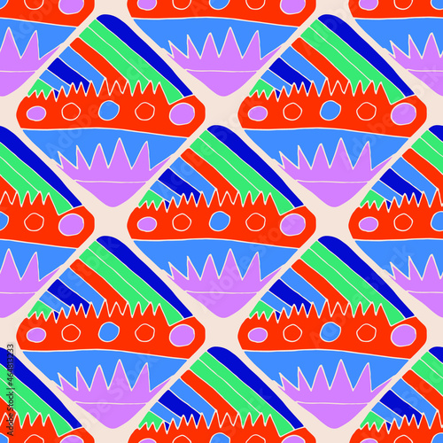 Seamless vector pattern with abstract modern doodles. Bright summer print. Trendy colorful background. Vintage geometric doodles.
