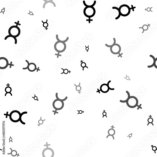 Seamless vector pattern with astrological mercury symbols, creating a creative monochrome background with rotated elements. Illustration on transparent background