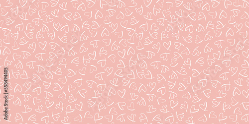 Seamless vector pattern with small hearts. Vector repeating texture with white linear heart on pink background. Repeatable backdrop with hand drawn tiny hearts.