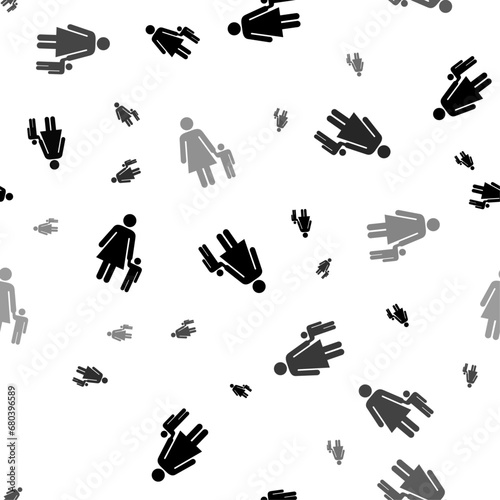 Seamless vector pattern with woman with child symbols, creating a creative monochrome background with rotated elements. Vector illustration on white background