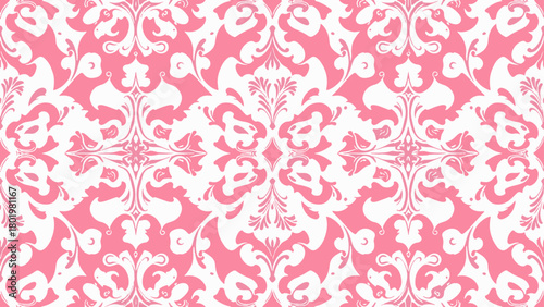 Seamless vintage floral and damask pattern with pink Victorian ornament design
