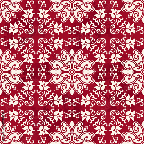 Seamless Vintage Red Chinese Background Cross Spiral Vine Flower