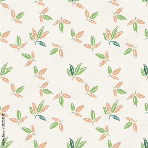 Seamless wallpapers, green leaf patterns, fresh leaves and dry leaves represent vector-style naturalism.