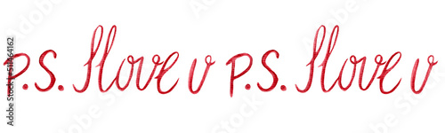 Seamless watercolor border, romantic lettering isolated on white background. For festive products, Valentines day etc.