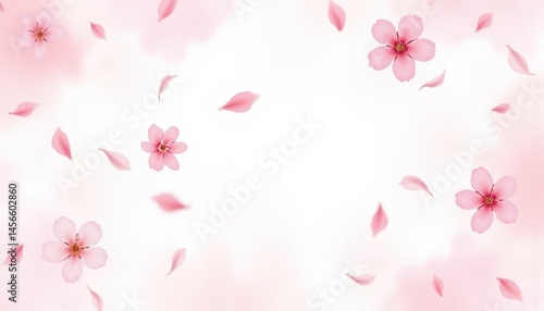 seamless watercolor cherry blossom pattern with sakura petals floating in soft breeze, pink and white tones over a light sky background with poetic, airy feeling.