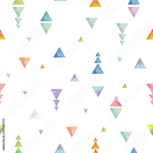 Seamless watercolor geometry texture of bright triangles on a gray background