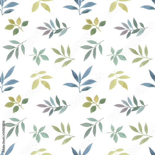 Seamless watercolor pattern. delicate leaves isolated on white background. ornament art. drawn leaves of different shades.