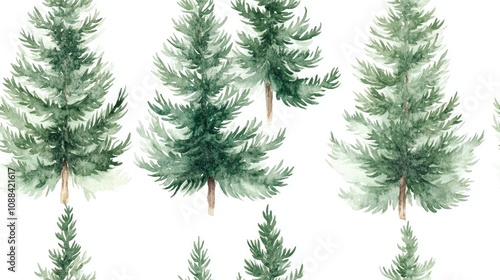 Seamless watercolor pattern of hand drawn pine trees on a white background perfect for festive holiday decorations seasonal crafts nature themed designs