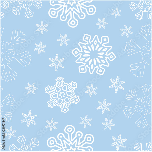 Seamless winter background with various snowflakes. Vector graphic pattern.