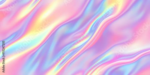 Seamless Y2K Futurism iridescent playful pastel holographic heatmap ombre gradient waves or flames background texture. Modern opalescent pale rainbow swirl neon nostalgic cyberbunk vaporwave pattern.