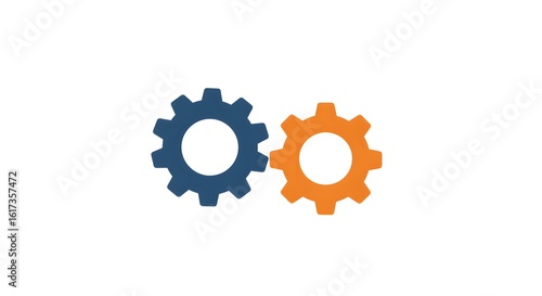 Seamlessly rotating blue and orange cogwheels as a concept for teamwork, system operation, and industrial processes.
