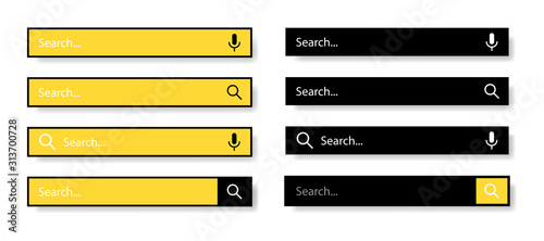 Search bar for user interface and website. Black and yellow icons on a white background. Modern selection of the search bar. Vector illustration.