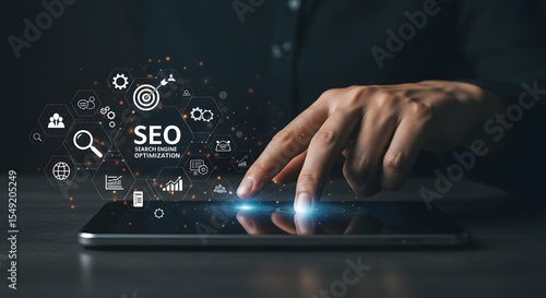 Search Engine Optimization Concept with Digital Marketing Icons and Analytics Interface