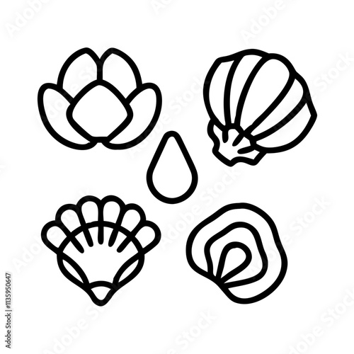 seashell collection icon, summer line art, summer icon - simple black line art icon of seashell collection, symbolizing summer celebrations. summer vector art.