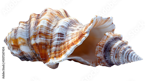 Seashell Exhibits Spiral and Texture, Isolated on White Background