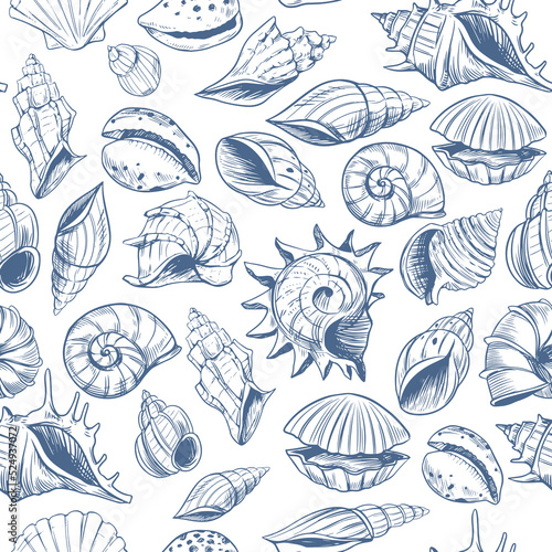 Seashells pattern. sketch style. set of vector illustrations