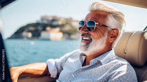 Seaside Drive: Impressive Gray-haired Man in Convertible